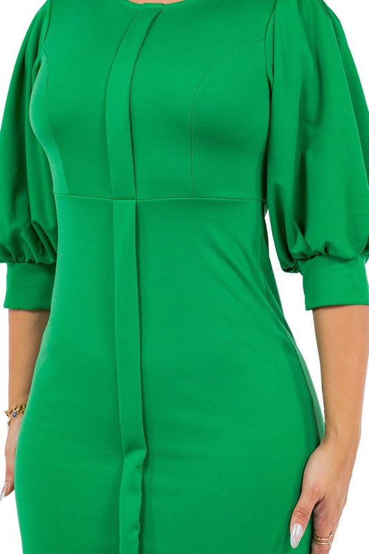 Details: Round neckline, 3/4 bell sleeves, back zipper up ,body-con style look