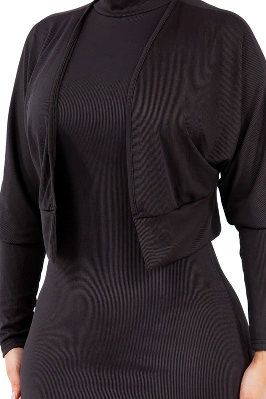 Details- 2pcs dress set , round neckline sleeveless ,body-con style maxi dress ,jacket long sleeves